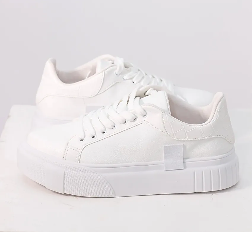 DESCRIÇÃO: Tênis em material sintético semelhante a couro, plataforma de 3 cm, palmilha acolchoada na cor do sapato.