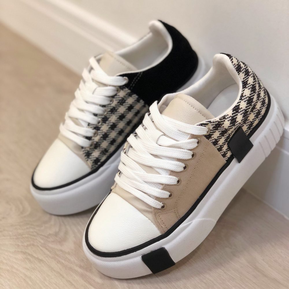 DESCRIÇÃO: Tênis em material sintético semelhante a couro, plataforma de 3 cm, palmilha acolchoada na cor do sapato.