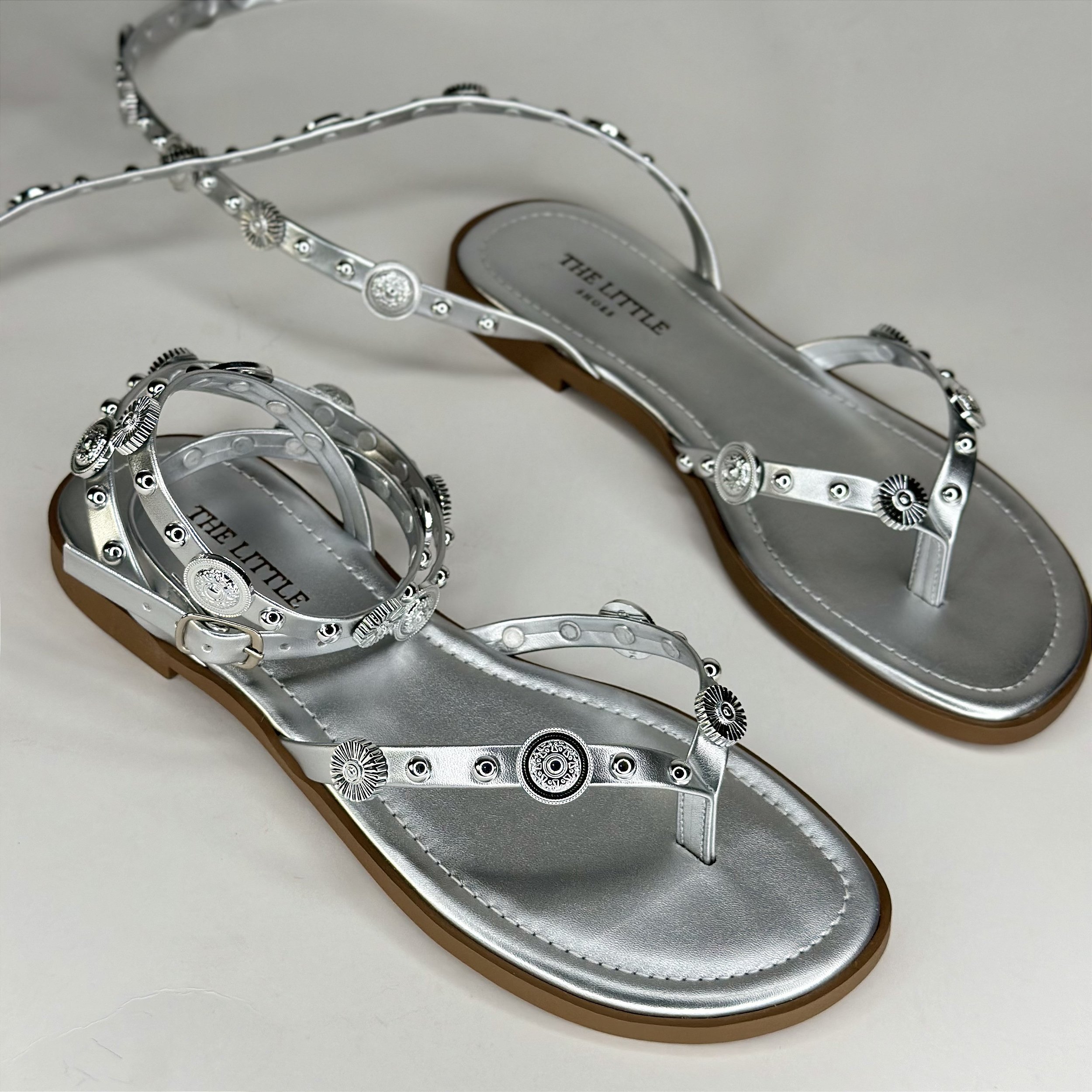 Moana - Sandália Rasteira Feminina de Moedas Prata