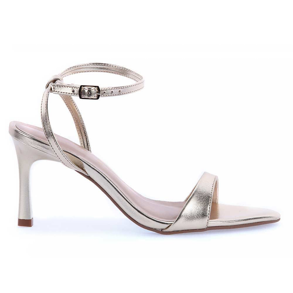 Aurora- Sandália Bico Folha Salto Fino Dourada